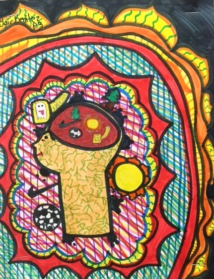Students designed a logo to represent themselves that incorporated five of their favorite things while using the Principles of Design such as unity and balance.
